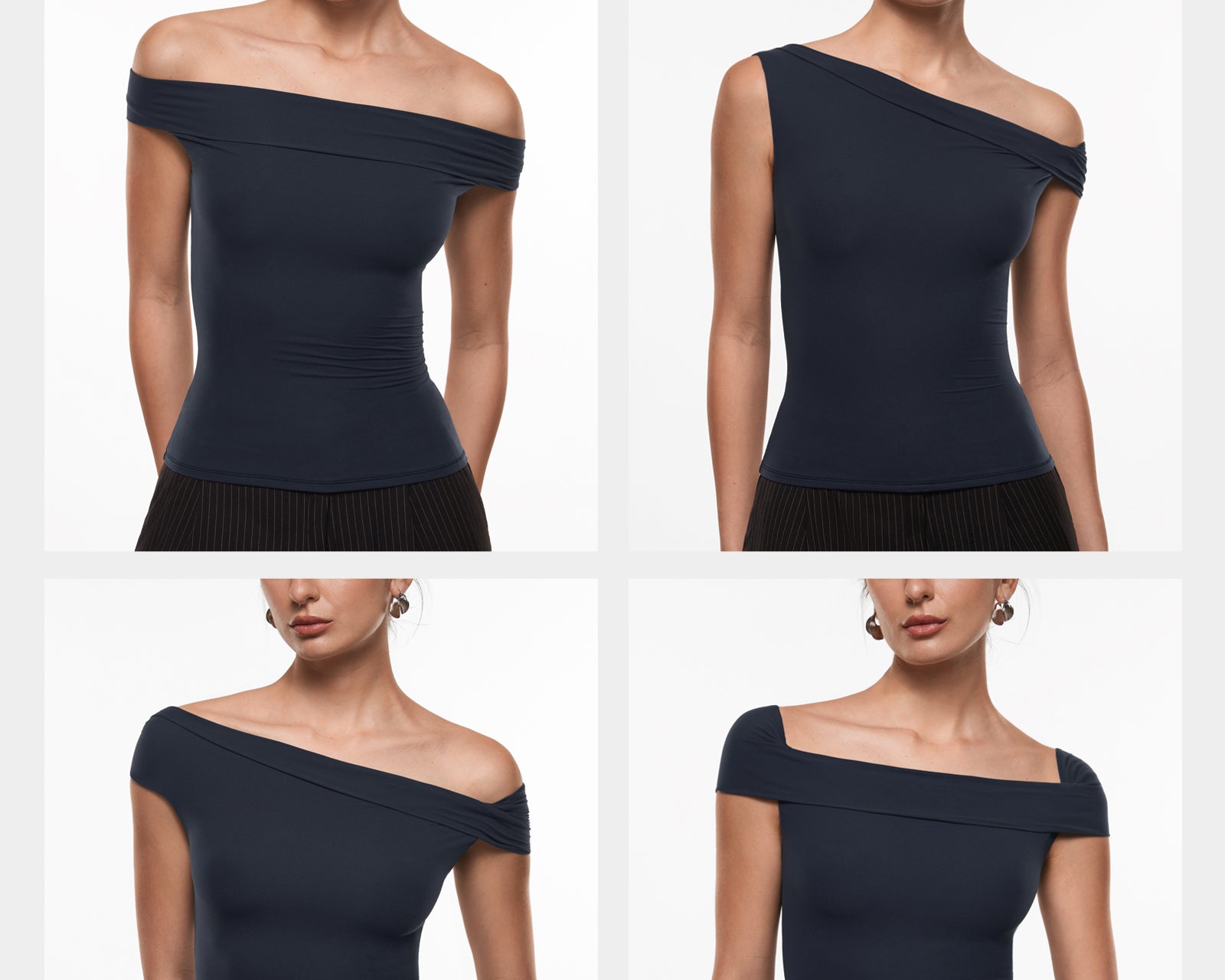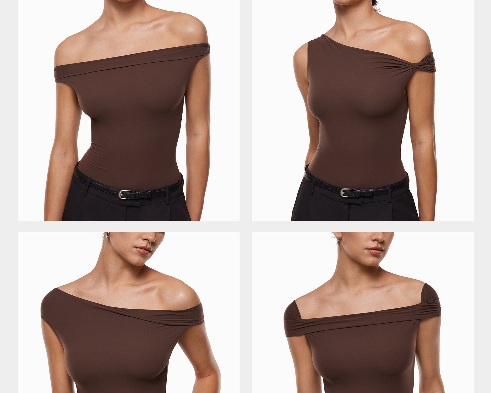 - Versatile - Shoulders can be on or off, asymmetric or symmetric, more than six ways to wear