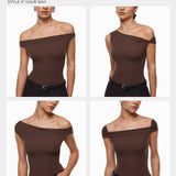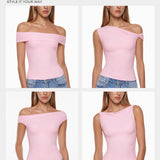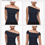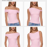 This top is a fashion game-changer with ultra-soft, stretchy fabric that feels like a second skin, meets your multiple fashion needs in summer. It offers versatile ways to wear, such as one shoulder, off the shoulder, or classic top, from asymmetric to symmetric. Lightweight, breathable, and not see-through. Perfect to match with jeans, skirts, or cargo pants for a stylish or casual look.